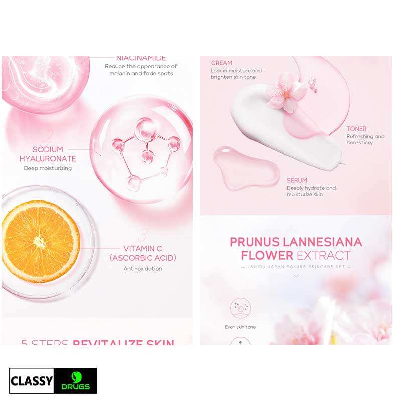 This Laikou Japan Sakura Skincare Set contains the following items: