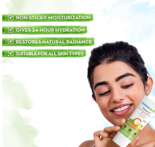 Say hello to a non-sticky hydrating formula that will make your skin glow. Crafted with the natural goodness of Vitamin C, Mamaearth Vitamin C Oil-Free Face Moisturizer is lightweight, absorbs quickly and leaves you feeling fresh and radiant. Curated especially for Indian weather, Mamaearth Vitamin C Oil-Free Face Moisturizer is a non-sticky hydrating formula enriched with Vitamin C, Gotu Kola, and Vitamin E. The antioxidants in Vitamin C fade dark spots and enhance the skin’s radiance while Gotu Kola deeply hydrates skin, promotes collagen production, and prevents skin from sagging. The Oil-Free Moisturizer penetrates deep into the skin and keeps it hydrated all day long. Its light texture doesn’t cause dullness and keeps your skin soft, plump, and glowing. And because of our no toxins and no harmful chemicals philosophy, you won’t find any Silicones, Parabens, Mineral Oil & Dyes in our Vitamin C Oil-Free Face Moisturizer.