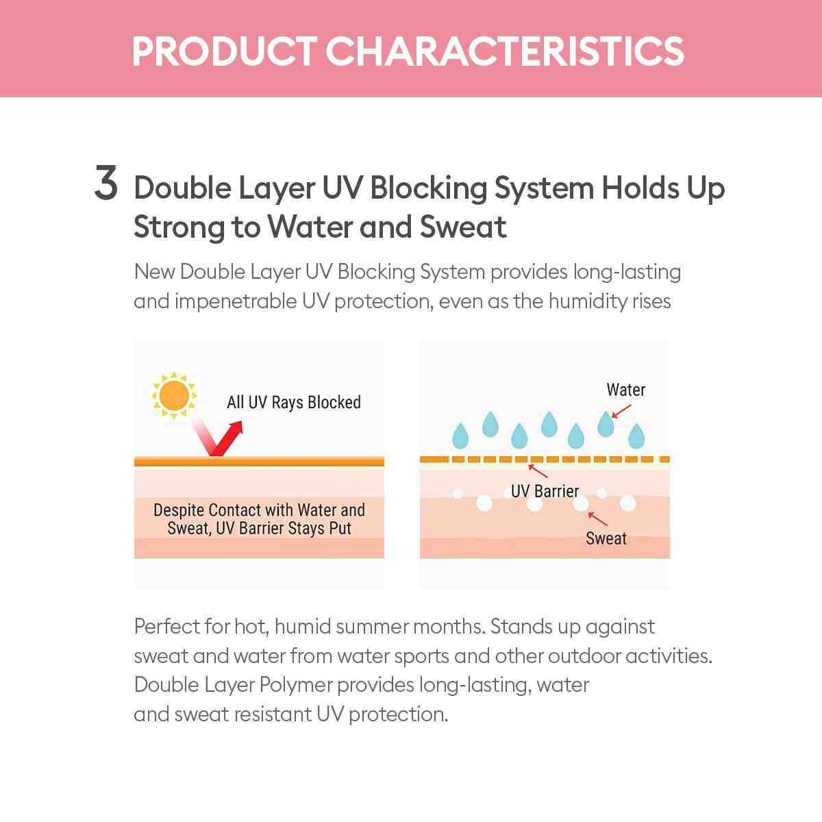 - New Double Layer UV Blocking System provides long-lasting and impenetrable UV protection, even as the humidity rises