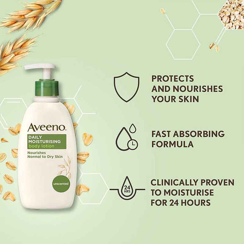 Daily hydrating lotion combines the concentrated goodness of finely ground naturally active colloidal oatmeal with rich emollients. This unique formula is clinically proven to go beyond 24-hour hydration and replenish the skin’s natural barrier function to significantly improve dry skin in just 2 weeks. It absorbs quickly and leaves skin looking and feeling soft, smooth, and healthy.