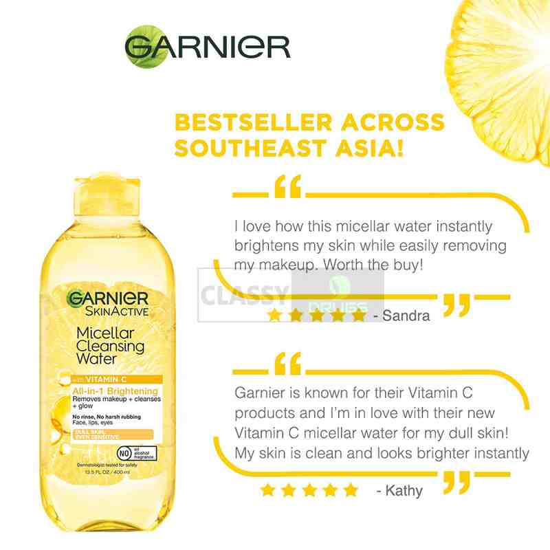 Garnier All In 1 Micellar Water with Vitamin C For All Type Skin 400 ml -For Face,Lips & Eyes